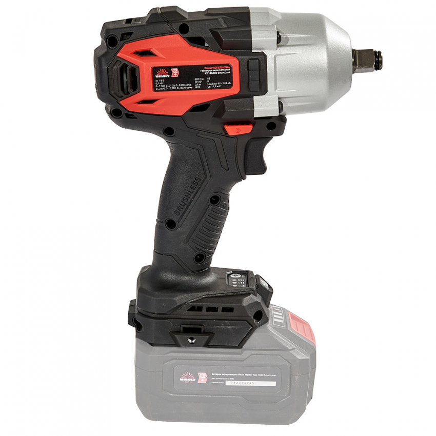 Гайкокрут Vitals Professional AT 1860 BS SmartLine+ оснащений безщітковим двигуном, який забезпечує високу продуктивність, надійність та довговічність. Електронне регулювання крутного моменту дозволяє точно налаштувати необхідну силу затягування гайок. Тип патрона квадрат 1/2' забезпечує надійне кріплення гайок.