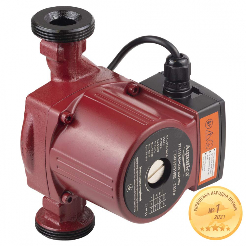 Насос циркуляційний 100Вт Hmax 6м Qmax 75л/хв Ø1½" 180мм гайки Ø1" AQUATICA (774132)