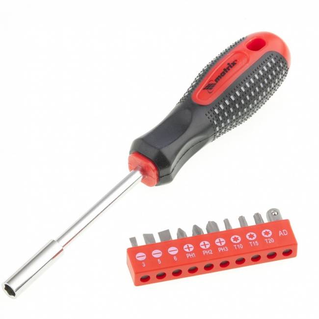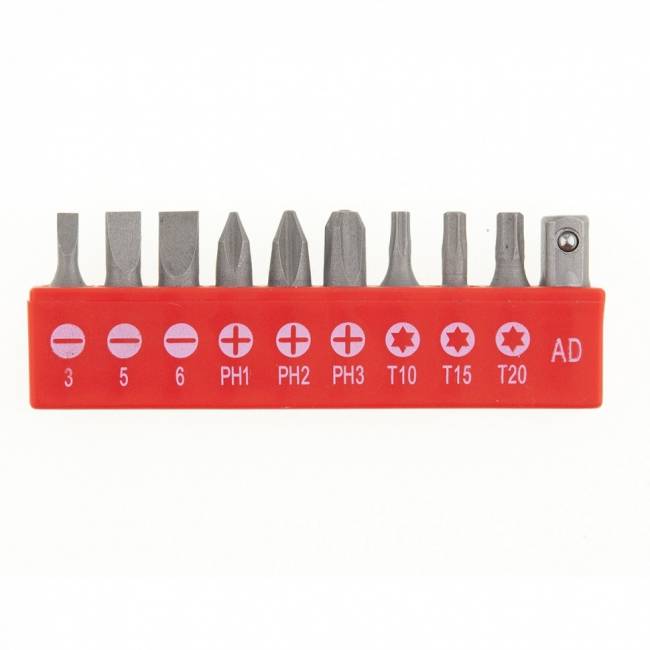 _x000D__x000D_Викрутка призначена для монтажу та демонтажу різьбових з'єднань._x000D__x000D_У комплект до викрутки входять біти, виготовлені з хромованадієвої сталі, з профілем SL3; SL5; SL6; РН1; РН2; РН3; Т10; Т15; Т20._x000D__x000D_Адаптер 1/4'._x000D__x000D_Ергономічна 3-х компонентна рукоятка 'anti slip' покращеного дизайну забезпечує зручне захоплення та ефективне обертання викрутки._x000D__x000D_