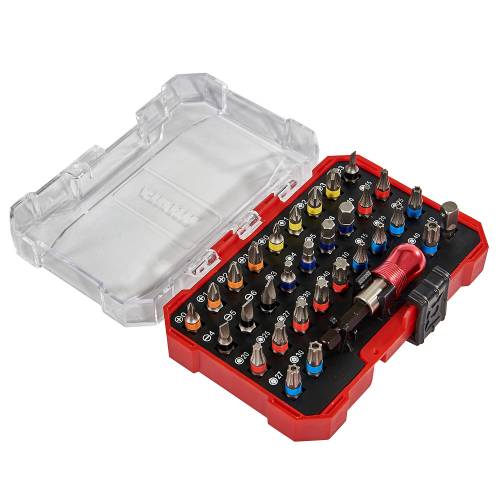 Набір біт з тримачем 32 предметів Vitals Master призначений для монтажу та демонтажу різьбових з'єднань з різними типами шліців. Довжина насадок складає 25 мм. Використовується як в ручному інструменті, так і з шурупокрутами, завдяки універсальному шестигранному хвостовику 1/4″.