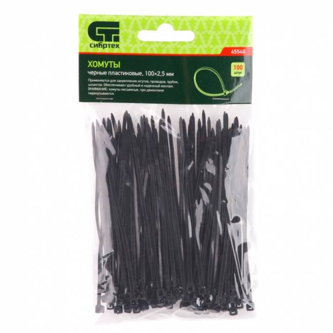 Хомути пластмасові 100 х 2.5 мм, чорні, 100 шт, СІБРТЕХ