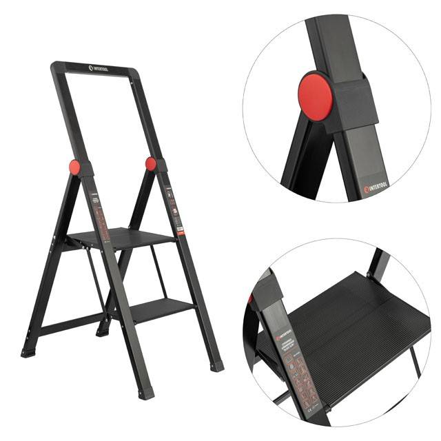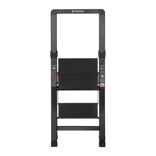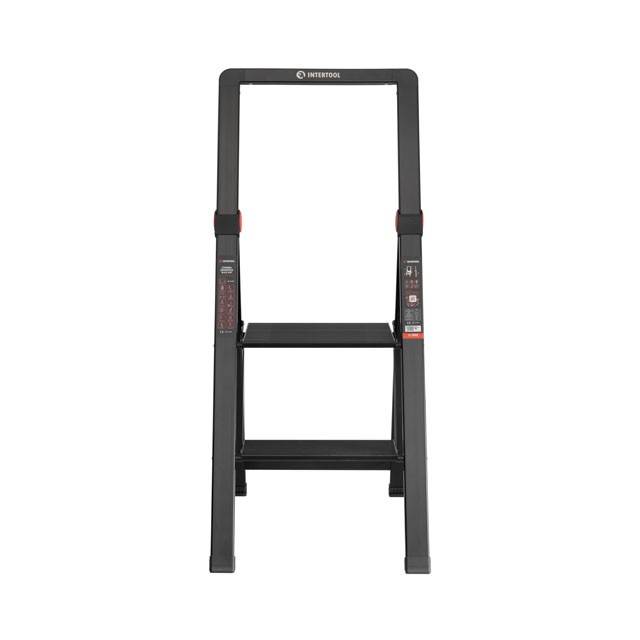 Сходини стрем'янки збільшеного розміру для відмінної стійкості та неперевершеного комфорту в роботі. Ширина верхньої платформи 335 мм дозволяє без побоювання стояти та вільно працювати. Поручень на верхній сходинці збільшує вашу безпеку.