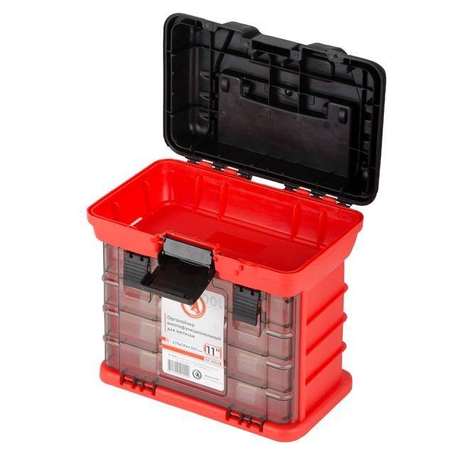 Завдяки чотирьом висувним секціям місткість органайзера значно збільшується! Розмір відсіків можна регулювати, тим самим поміщаючи різні за типом та довжиною болти, цвяхи, шурупи та й взагалі будь-що.