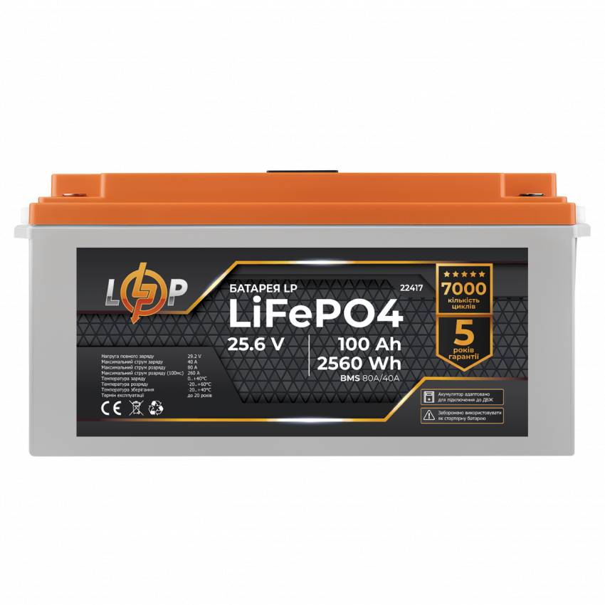 УВАГА! Акумулятор 24V (25,6V) - 100 Ah (2560Wh) (BMS 80/40А) пластик для ДБЖ заборонено використовувати як стартерний АКБ в автомобілях та інших транспортних засобах!