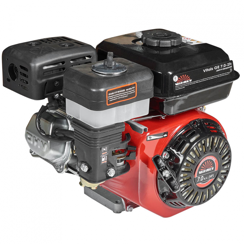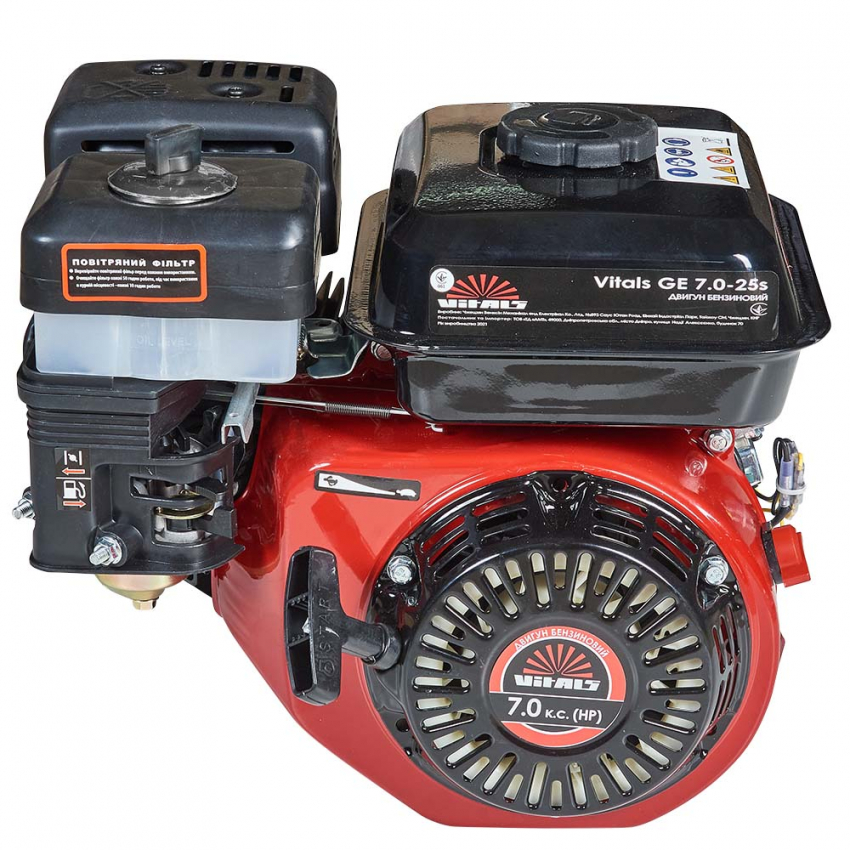 Двигун внутрішнього згоряння Vitals GE 7.0-25s — універсальний бензиновий одноциліндровий чотиритактний двигун загального призначення з повітряним охолодженням.