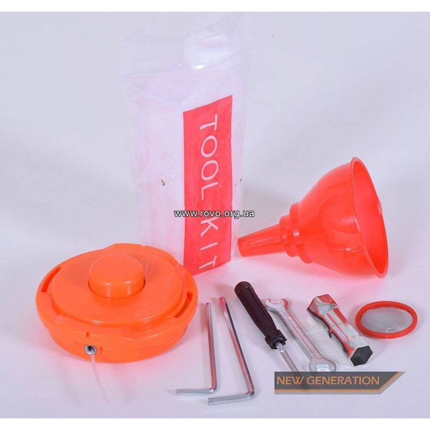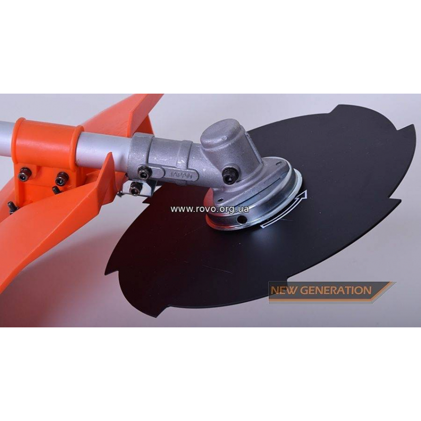 Максимальний діаметр ріжучого диска 255 мм. Максимальна щиріна скошування з триммерною головкою 415 мм. Номінальна потужність двигуна при 6500 об/хв 2,0кВт / 2,7 л.с. Робочий об'єм двигуна 43 див. Об'єм паливного бака 1,25 л Вага в зібраному вигляді 9,1 кг Обіг двигуна в момент початку обертання ріжучих елементів 3400 ( ,- 200) об/хв Вихлоп Глушник з іскрогасником масло 25 / 1 Безін А92, А95 (Октанове число не менше 90) Масло для двотактних двигунів Система стартера Автоматичний шнуровий стартер Зчеплення Відцентровий тип Напрямок обертання ріжучих елементів Проти годинникової стрілки побачивши зверху