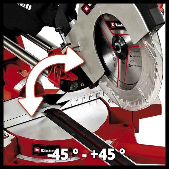 Двостороння торцева пила з протяжкою Einhell TE-SM 2534 Dual - це потужна пила для різання дерева, ламінованих панелей і пластику. Пильна головка може нахилятися вліво і вправо для забезпечення високої гнучкості в налаштуванні різів з двох сторін. Лазерна лінія від інтегрованого лазера з живленням від мережі дозволяє швидко і точно розрізати заготовку. Високоякісний поворотний стіл торцевої пили TE-SM 2534 Dual має точний механізм регулювання кута для кутових розрізів, який може бути налаштований і зафіксований в різних положеннях. Функція протяжки дозволяє розрізати особливо широкі заготовки. Додаткові розширювальні стійкі X-Tend забезпечують ергономічне управління однією рукою, вони мають затискний пристрій для надійної фіксації заготовки і упор деталі. Вбудований обмежувач дозволяє просто і точно виконувати повторне різання. LED підсвітлення забезпечує оптимальне освітлення заготовки, в той час як плавний пуск забезпечує легкий і зручний запуск. Високоякісний пильний диск діаметром 250 мм з твердосплавними карбідними напайками гарантує чисте різання. Мішок для тирси зберігає робоче місце в чистоті. Після роботи можна легко і надійно закріпити кабель живлення на вбудованому утримувачі кабелю. Для легкого та безпечного транспортування передбачена транспортувальна ручка.