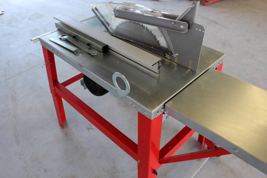 Holzmann TKS500S відмінне і компактне рішення для обробки дерев'яна яных елементів безпосередньо на монтажному майданчику. Конструктивна особливість відкидні ніжки, для зручності транспортування, робочий стіл виготовлений з оцинкованої сталі, зі вставкою з анодованого алюмінію, навколо пиляющей фрези.
