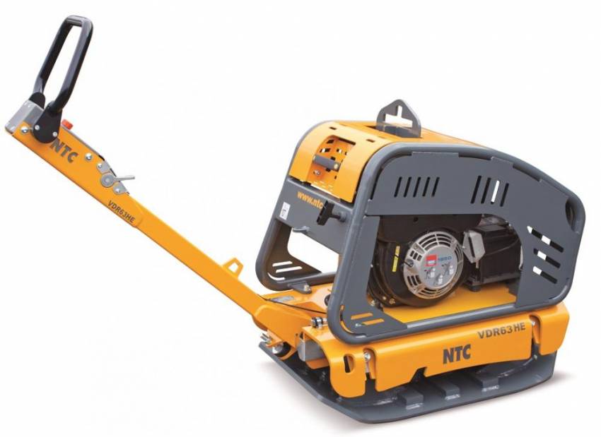 Дизельна реверсівна віброплита NTC VDR 63 HE з електростартером комплектується потужним двигуном HATZ 1B50 потужністю 7,9 кВ/10,5к.с. з гелевим акумулятором стійким до сильних вібрацій. Вилика сила ущільнення до 850 мм. Віброплита працює з широким спектром матеріалів — гравій, щебінь, пісок та ґрунт навколо фундаментів будинків, в траншеях, при будівництві або реконструкції проїзних частин або вулиць.