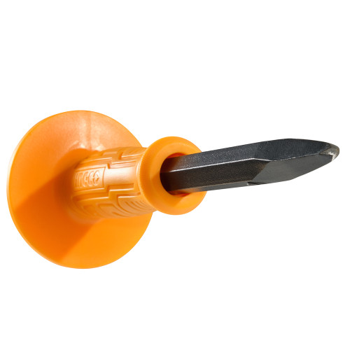 Зубило пікоподібне 4x16x250 мм з руків'ям INGCO виготовлено з міцної вуглецевої сталі марки №45 і широко застосовується в слюсарних роботах.
