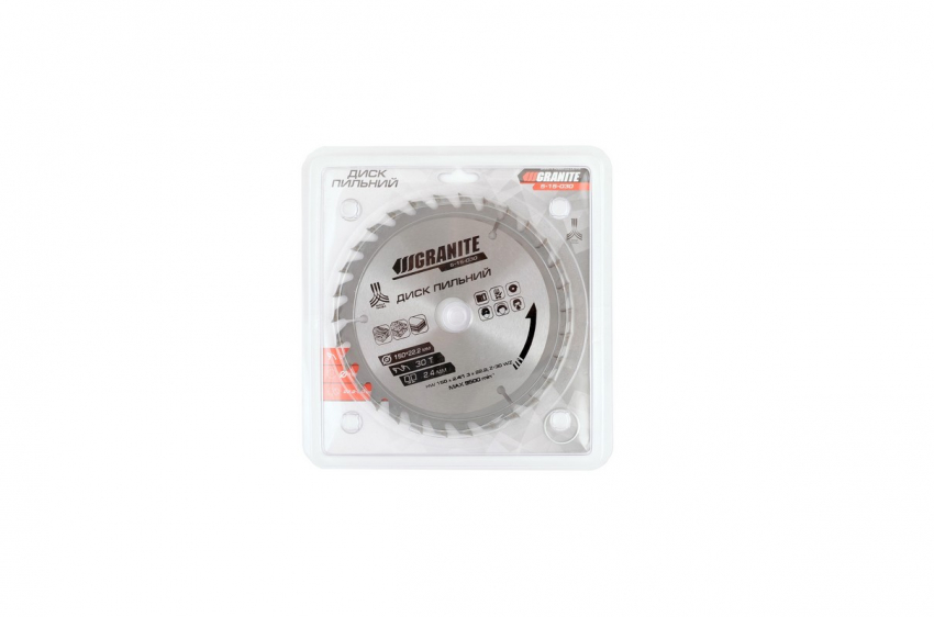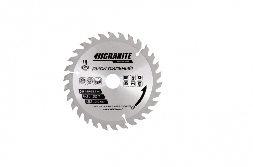 Диск пильний GRANITE для дерева з твердосплавними напайками 150х22.2х30Т адаптер 22.2-20 9500 об/хв 5-15-030