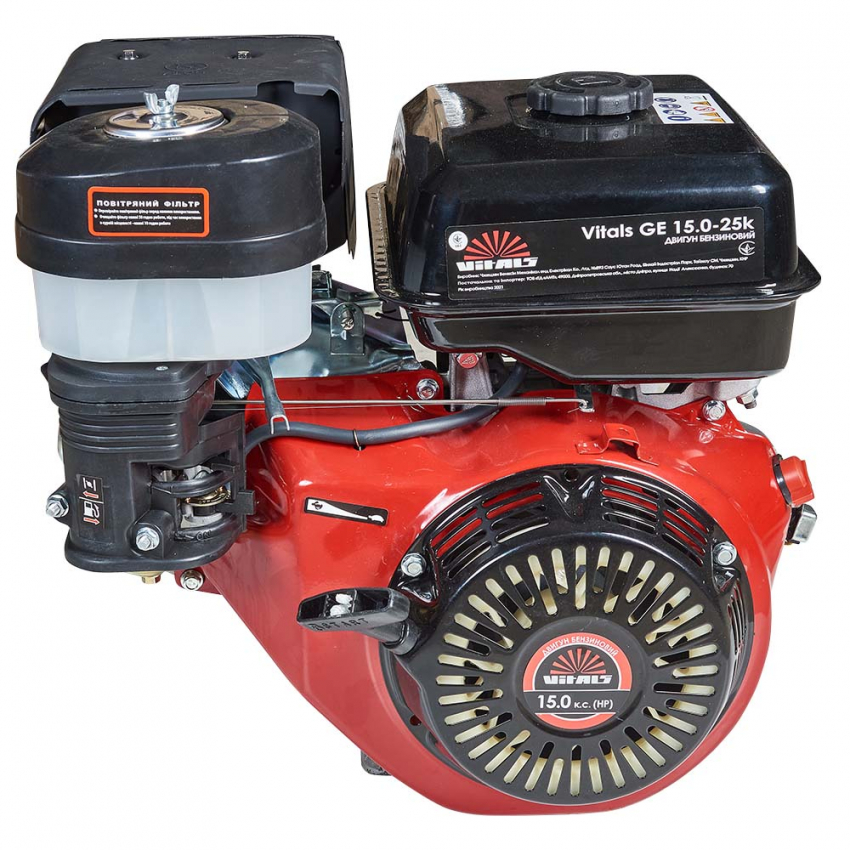 Двигун внутрішнього згоряння Vitals GE 15.0-25k — універсальний бензиновий одноциліндровий чотиритактний двигун загального призначення з повітряним охолодженням.