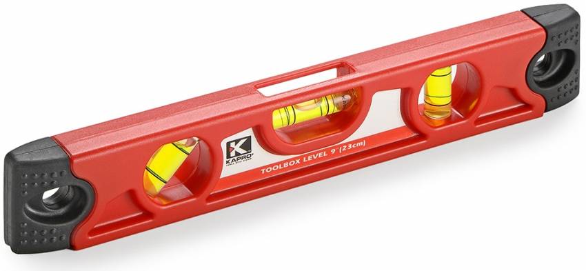 магнітний рівень довжиною 23 см служить для вимірювання кута відхилення від заданої площини, за його допомогою можна вирівняти поверхню, скоригувати розташування будь-якого елемента тощо; має 3 колби та магнітну основу для кращої стійкості, підходить для робіт з металевими конструкціями; для сантехнічних робіт на інструменті передбачено V-подібну канавку; амортизуючі кінцеві ковпачки дозволяють зберегти поверхню від зайвих подряпин та потертостей. Читати докладніше