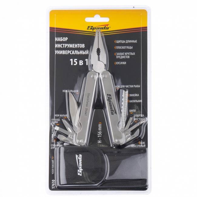 У комплект входять: плоскогубці, довгогубці, кусачки, захоплення круглих предметів.
