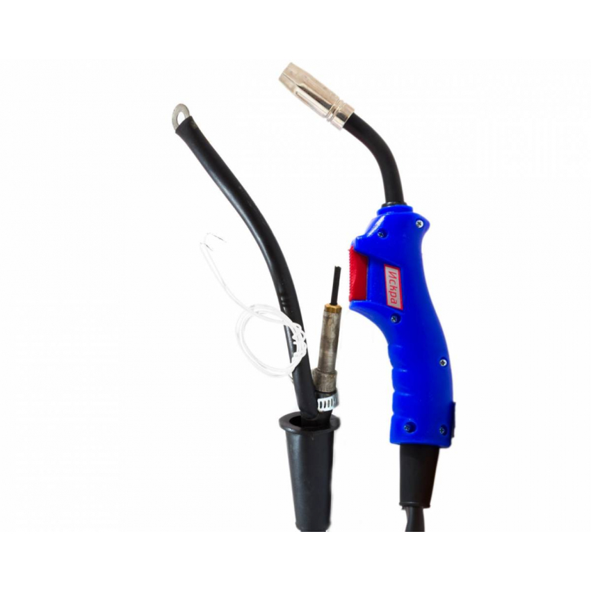Пальники зварювальні 'ІСКРА' для напівавтоматів призначені для зварювання в захисному газовому середовищі стандартним зварювальним дротом (обідненим, полірованим) суцільного перерізу. Спосіб підключення - штирьовий, який забезпечує надійне підключення до зварювальних апаратів виробництва СНД та закордонних аналогів. Максимальний зварювальний струм, на який розрахований пальник – не більше 200А. Відсоток часу роботи на максимальному струмі – 60%. Подача газу та дроту відбувається при натисканні пускової кнопки на пальнику. Швидкість подачі дроту регулюється на зварювальному апараті, тиск газу – на редукторі.