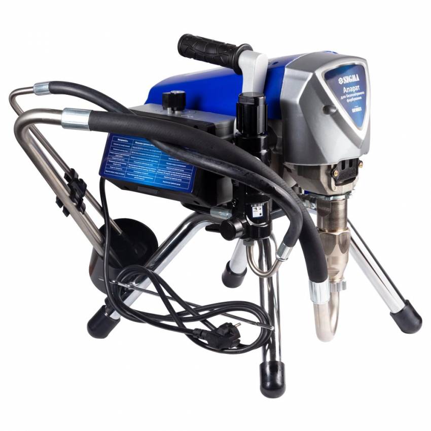 <b>Апарат для безповітряного фарбування 1100Вт 3.2л/хв 225бар Profi SIGMA (6816631)</b> призначений для виконання фарбування розпиленням під високим тиском і замнований на дробленні ЛФМ при нанесенні його з великою швидкістю через сопло пістолета-фарборозпилювача на поверхню, що фарбується.