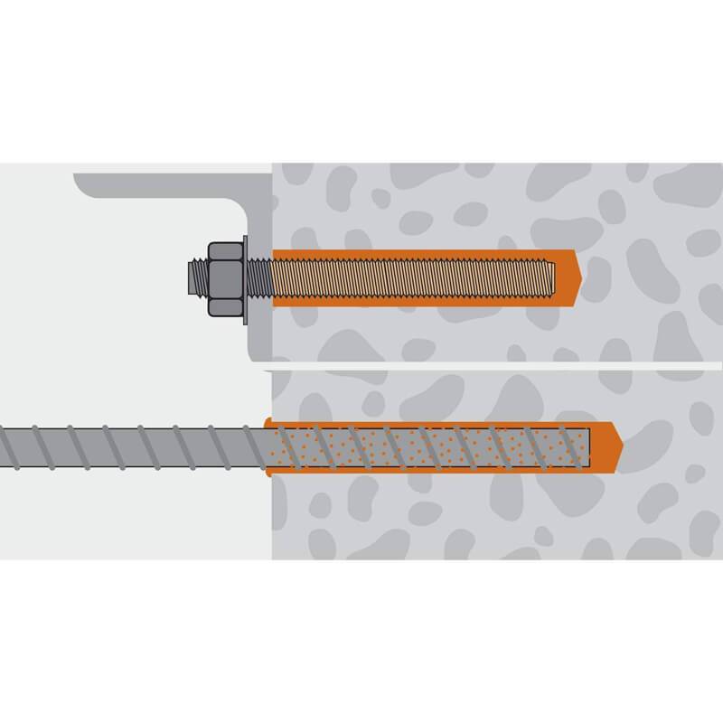 Об'єм картриджа 300 мл; Температурний режим (Т) -20 - 30 ° C.; Застосування з метричною шпилькою від М10 до М30; Застосування з арматурним дротом від D10 до D32.
