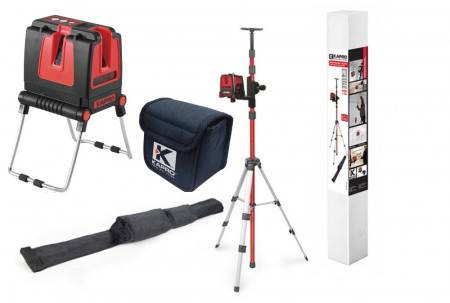 лазерний рівень з трьома червоними променями (1 горизонтальний та 2 вертикальних) використовується для виконання безлічі робіт - від вирівнювання плитки, окантовок, профілів, шаф до встановлення дверей, вікон, навішування полиць, картин; для кутових конструкцій є функція нахилу проекції променя; звукове сповіщення при зміщенні променя; прогумовані елементи корпусу захистять прилад від випадкових ударів або падіння; рівень спроектує промені з повним розворотом на 180 град., з точністю до 0,2 мм/м на відстань 30 м (з детектором поза приміщенням – 50 м). Читати докладніше