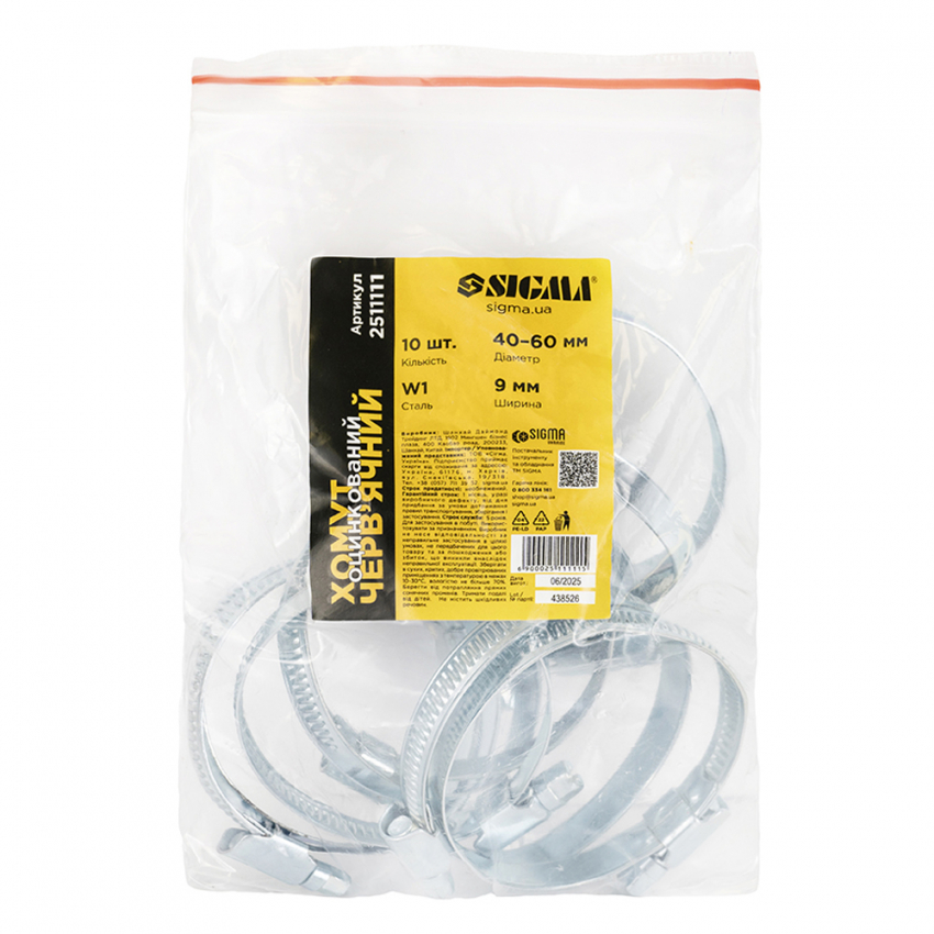Хомут черв'ячний оцинкований 9мм D40-60мм 10шт Sigma (2511111)