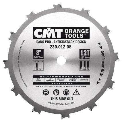 Dado - це комплект з пилкових дисків, пазових сегментів і регулювальних шайб-прокладок, який встановлюється на вал настільної, або стаціонарної пили. Система Dado CMT дозволяє робити глухі пази в дереві, фанері, ДСП, МДФ шириною від 6,35 до 22,23 мм (з кроком в 0,1 мм). Продуктивність DADO набагато перевищує продуктивність насадних пазових фрез. ЗАСТОСУВАННЯ: Досвід компанії CMT у розробці інструментів дозволив розробити ідеальну пазову пилу типу DADO. ОБЛАДНАННЯ: Настільні циркулярні пили. МАТЕРІАЛ: Ламінована, тверда і м’яка деревина, фанера.