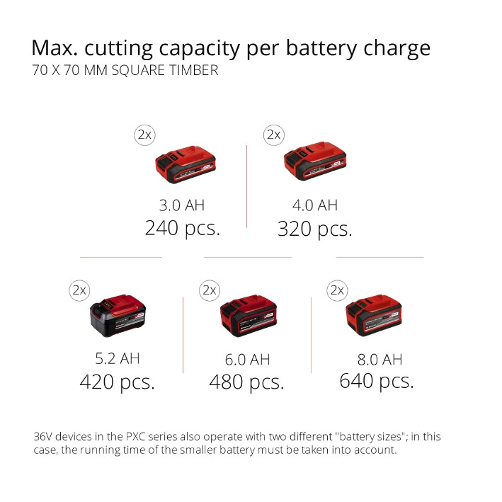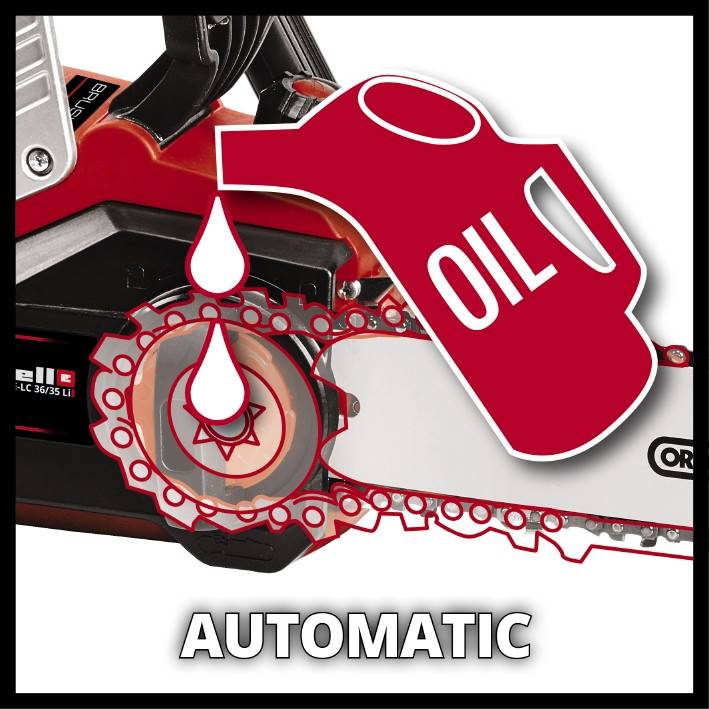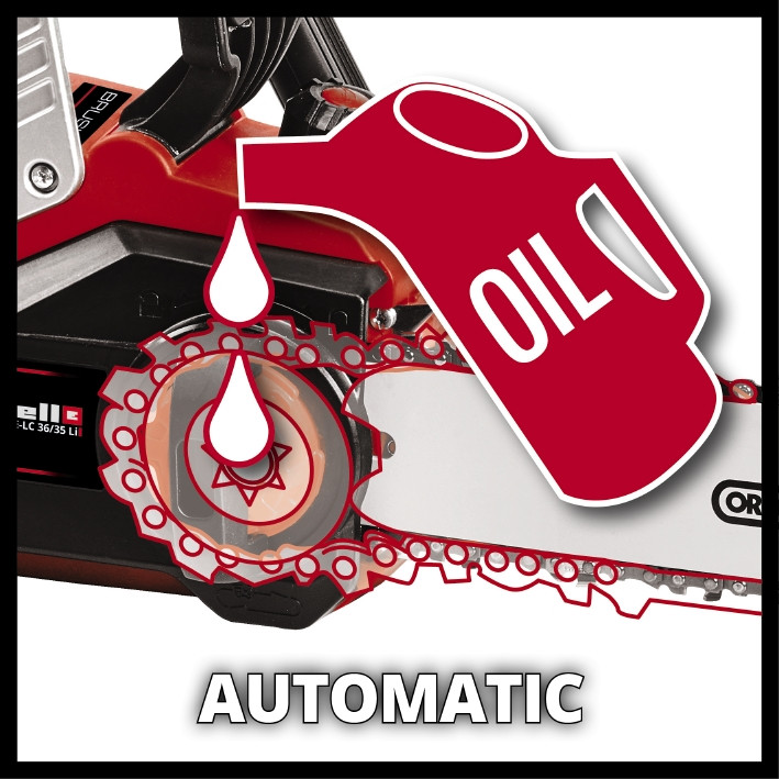 Акумуляторна ланцюгова пила Einhell GP-LC 36/35 Li - Solo поєднує в собі поутжність і гнучкість при розпилюванні дров, проріджуванні кущів і вирубці невеликих дерев. Інструмент є пристроєм сімейства Einhell Power X-Change. Акумулятор і зарядний пристрій Power X-Change можуть використовуватися для всіх пристроїв сімейства Power X-Change. Якісні шина довжиною 350 мм і ланцюг OREGON забезпечують хорошу продуктивність різання. Пила має безщітковий двигун, який працює від двох акумуляторів системи Power X-Change (рекомендовано акумулятори ємністю не менше ніж 3,0 Аг). Ланцюг може бути натягнутий і змінений без використання інструментів. Захист від віддачі з миттєвим механічним гальмом ланцюга забезпечує високу безпеку при експлуатації. Ця ланцюгова пила поставляється з автоматичною системою змащення ланцюга, а масляний бак має великий отвір, що дозволяє легко заливати мастило. Велике оглядове вікно дозволяє легко перевірити, скільки масла в масляному баку автоматичної системи змащення ланцюга. Завдяки своїй ергономічній ручці з м'якими накладками, пила ідеально підходить для роботи. Поставляється без акумуляторів і зарядного пристрою, вони доступні окремо.