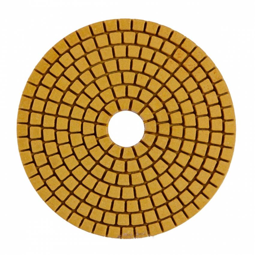 Гнучкі шліфувальні алмазні диски: -Для шліфування торців керамічної плитки та порцелянової плитки за допомогою КШМ з регульованою частотою обертання вала без використання охолодження; -Для полірування плоских і вигнутих поверхонь граніту, твердого мармуру та пісковика твердих порід, використовуючи КШМ з регульованою частотою обертання, електричним захистом та обов'язковим охоложденням водою. Послідовність використання на керамічних плитках та порцелянової плитки - №30 #60 #120, обробляючи торець, і при зняттям фаски - лише №220. Шліфування проводиться на обертах - 2800 об/хв Послідовність полірування граніту, мармуру твердих порід та пісковика твердих порід - №30 #60 #120 #220 #400 #800 #1500 #3000. Оберти вала під час полірування 2800-3700 об/хв.