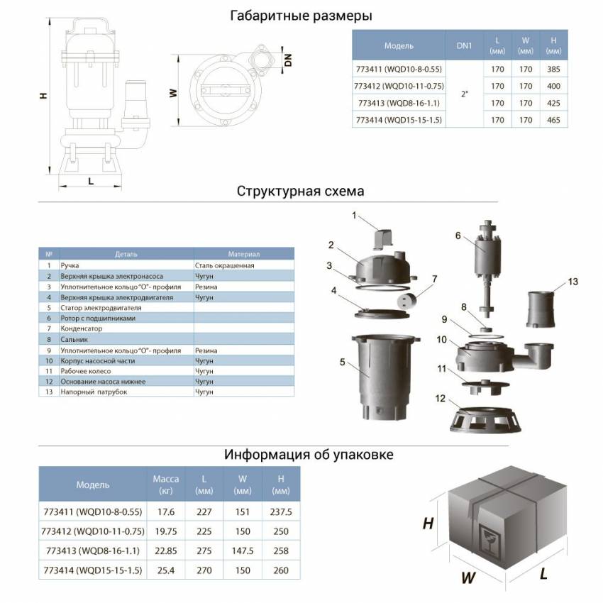 Насос каналізаційний 1.1кВт Hmax 18м Qmax 350л/хв AQUATICA (773413) Насоси даної серії можуть застосовуватися для: відкачування забруднених рідин, які можуть містити сторонні предмети побутового використання, відведення дощових стоків з підвалів, гаражів, водовідведення вод, відведення забруднених стоків у технологічних процесах, перекачування води на невеликих очисних спорудах тощо. Насосна частина: Корпус: чавун; Вал двигуна: нержавіюча сталь AISI 304; Робоче колесо: чавун; Вихідний патрубок: чавун. Електродвигун: Тип двигуна: асинхронний, закритого типу із вбудованим в обмотку термозахистом; Обмотка статора: мідь; Напруга: 220-240 В; Частота: 50 Гц; Клас ізоляції: В; Клас захисту: IP68. Довжина кабелю: 7 м; Продуктивність: 350 л/хв; Напір: 18 м. Умови застосування: Максимальна температура рідини, що перекачується: 40 ºC; Глибина занурення під дзеркало води: 5 м; Максимальний діаметр частинок у зваженому стані: 35 мм; Водневий показник води (pH): 6.5 – 8.5; Загальна мінералізація води: не більше ніж 1500 г/м³; Термін гарантійного обслуговування: 18 місяців. Купити каналізаційний насос AQUATICA Ви можете, оформивши замовлення в нашому інтернет-магазині за допомогою простої форми, доставка здійснюється по всій Україні. Якщо у Вас виникли запитання, Ви можете зателефонувати за вказаними номерами або замовити зворотній дзвінок. Спеціалісти нашого інтернет-магазину нададуть Вам детальні консультації та допоможуть зробити правильний вибір.