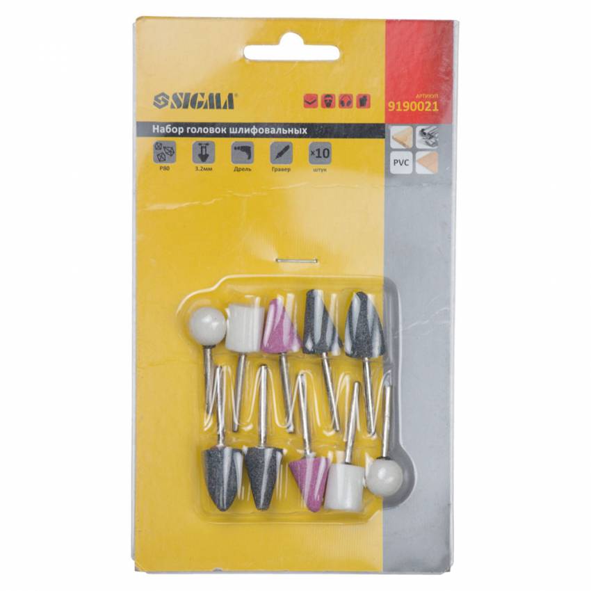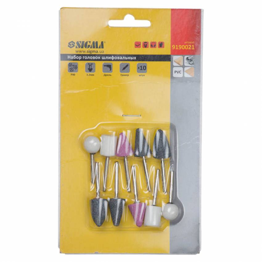Набір головок шліфувальних 10шт хвостовик Ø3.2мм Sigma 9190021 призначений для видалення задирок, згладжування зварних швів, чистового шліфування поверхонь, для роботи по металу, склу, кераміці та пластику, для встановлення в міні-дрилі, прямі шліф. Купити набір головок шліфувальних Sigma Ви можете, оформивши замовлення в нашому інтернет-магазині за допомогою простої форми, доставка здійснюється по всій Україні. Якщо у Вас виникли запитання, Ви можете зателефонувати за вказаними номерами або замовити зворотній дзвінок. Спеціалісти нашого інтернет-магазину нададуть Вам детальні консультації та допоможуть зробити правильний вибір.
