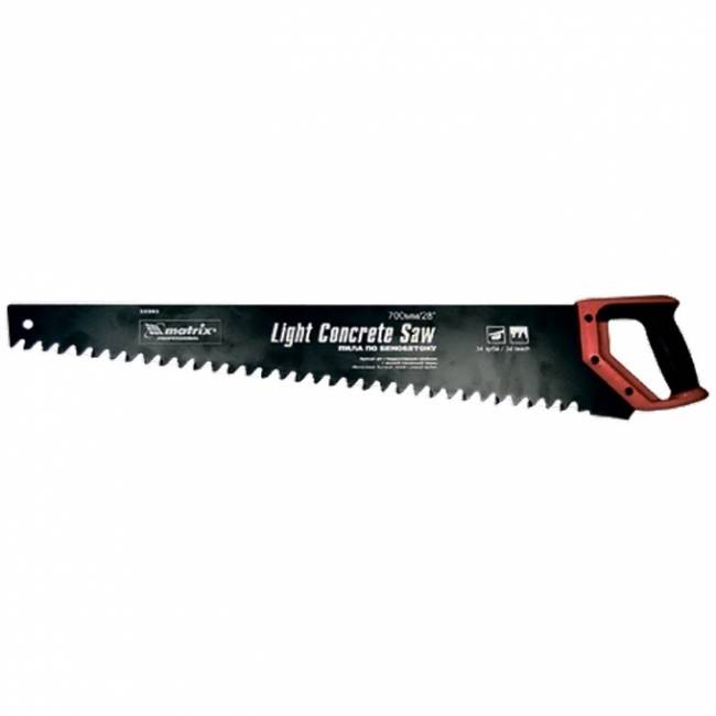 Ножівка має твердосплавні напайки з карббітаку вольфраму зі спеціальним кутом заточування для розпилу пінобетонних блоків. Тефлонове покриття захищає полотно від корозії та знижує тертя про матеріал. Двокомпонентна рукоятка ергономічної форми кріпиться до полотна трьома гвинтами.