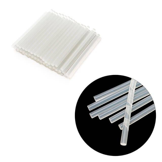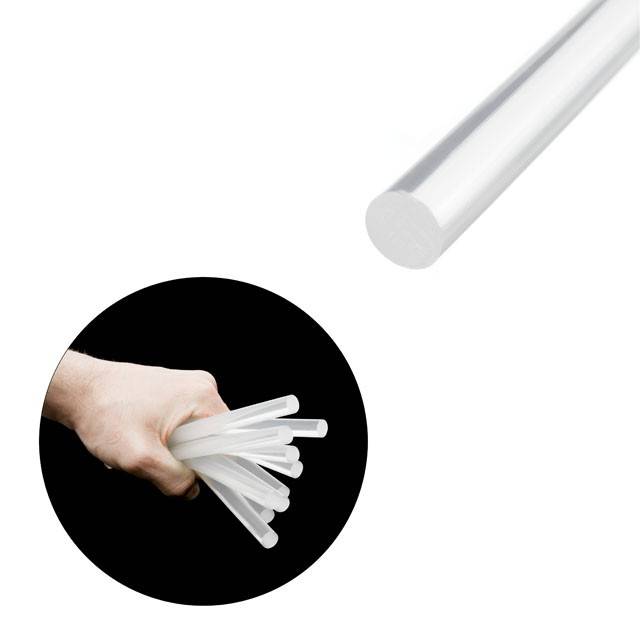 Стрижні виготовлені з високоякісної сировини марки Dupont. Такий термоклей складається з сополімеру ЕВА, він нетоксичний, не виділяє запаху та не містить розчинників. Напівпрозорий високов'язкий клей дозволяє надійно скріплювати різні матеріали, твердішаючи в міру застигання через 30-40 секунд.