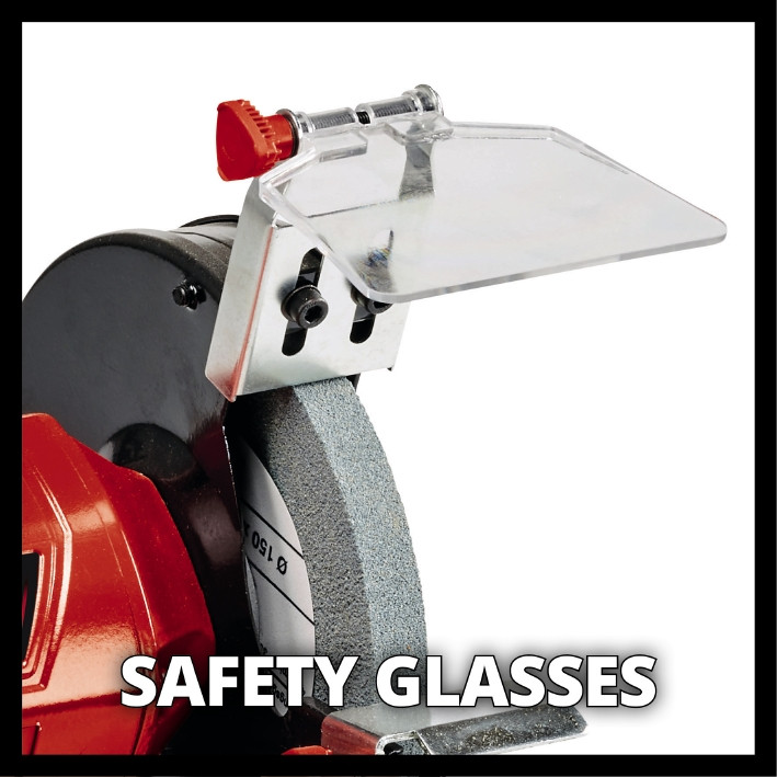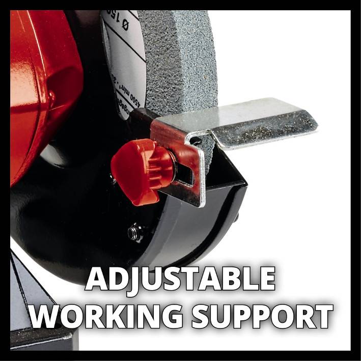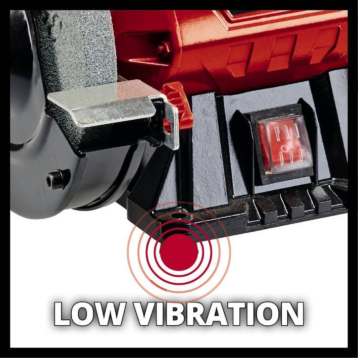 Точильний верстат Einhell TC-BG 150 ідеально підходить для невеликих робіт, таких як ремонт, корекція форми і полірування, а також для коригувальних робіт, заточування або різання. Вбудовані гумові амортизатори, регульовані робочі упори і міцна компактна металева конструкція забезпечують безпечне і довгострокове використання цього пристрою. Точильний верстат TC-BG 150 оснащений чотирма гумовими амортизаторами для забезпечення безпечної і низьковібраційної роботи. Вбудовані регульовані робочі упори забезпечують різні положення для зручної роботи. Міцна компактна металева конструкція і точні кулькові підшипники забезпечують тривалий термін служби і точну роботу. Для забезпечення безпеки під час шліфування передбачені регульовані іскрозахисні екрани і закриті з обох боків захисні кожухи.