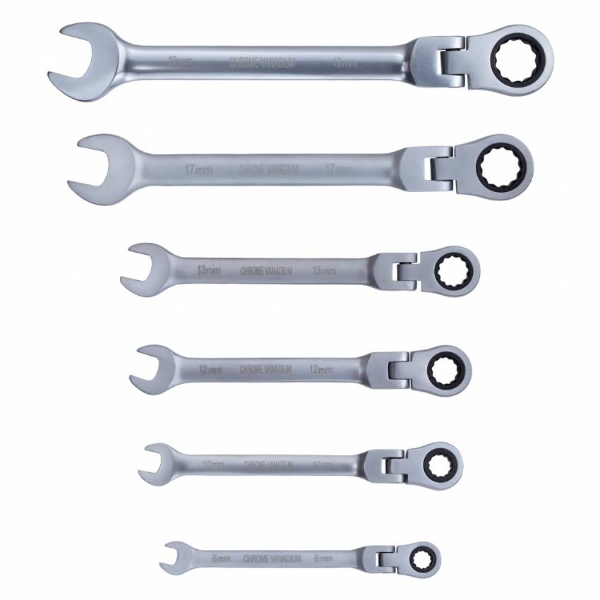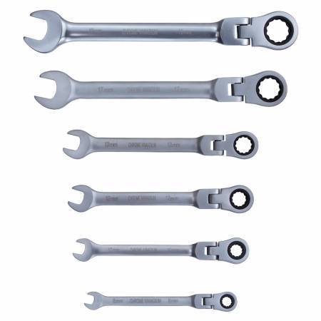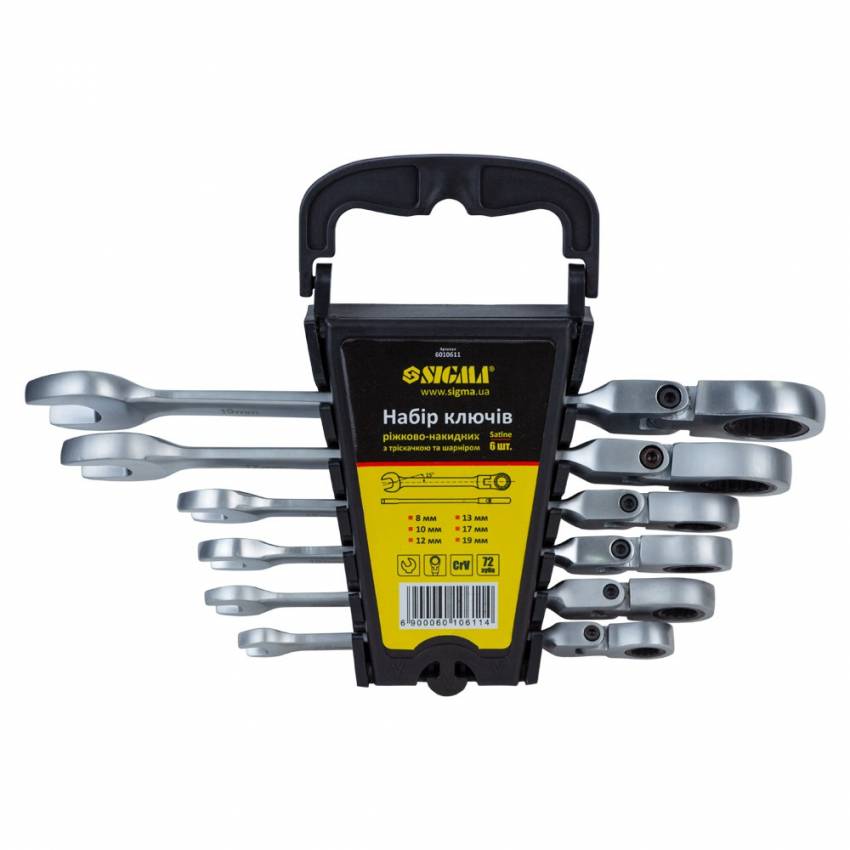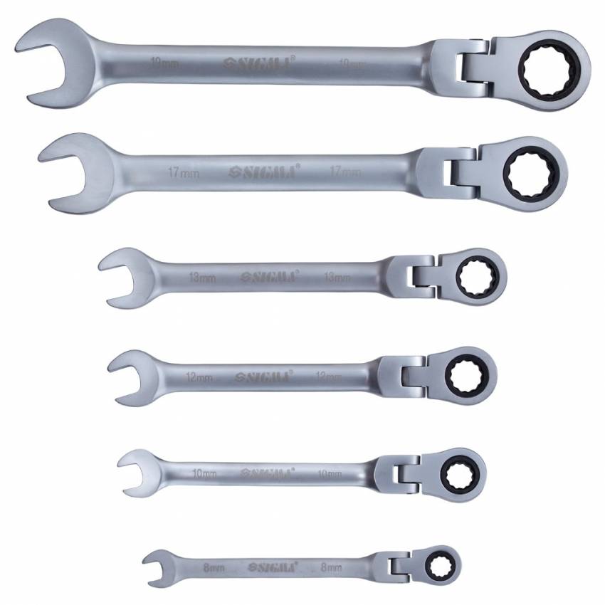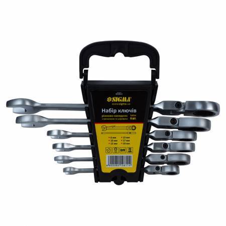 Ключи рожково-накидные трещоточные с шарниром 6шт (8, 10, 12, 13, 17, 19мм) CrV satine SIGMA (6010611)