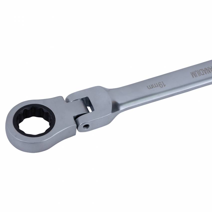 Накидная сторона, благодаря кольцевому строению, в момент приложения усилия позволяет распределить нагрузку равномерно. Это снижает риск «слизать» грань угла. Трещоточный механизм с шарниром позволяет выполнять работы в местах с ограниченным пространством.