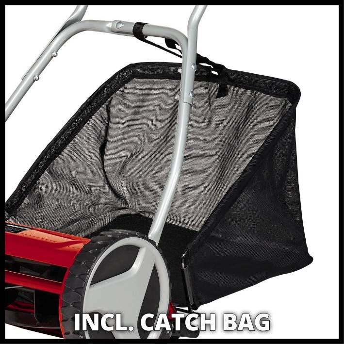 Ручна газонокосарка Einhell GC-HM 400 - це міцний і надійний помічник для чистого, тихого і екологічного косіння газонів малої площини. Плавність ходу забезпечують шарикопідшипники, на яких встановлений вал діаметром 125 мм з 5 ножами. Косарка має механізм регулювання висоти скошування с 4-ма режимами від 13 до 37 мм. GC-HM 400 має травозбірник ємністю 27 літрів і широкі колеса діаметром 215 мм, які не навантажують газон. Ширина різання газонокосаркою дорівнює 40 см. GC-HM 400 рекомендовано для косіння газонів площею до 250 м².