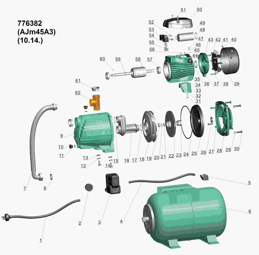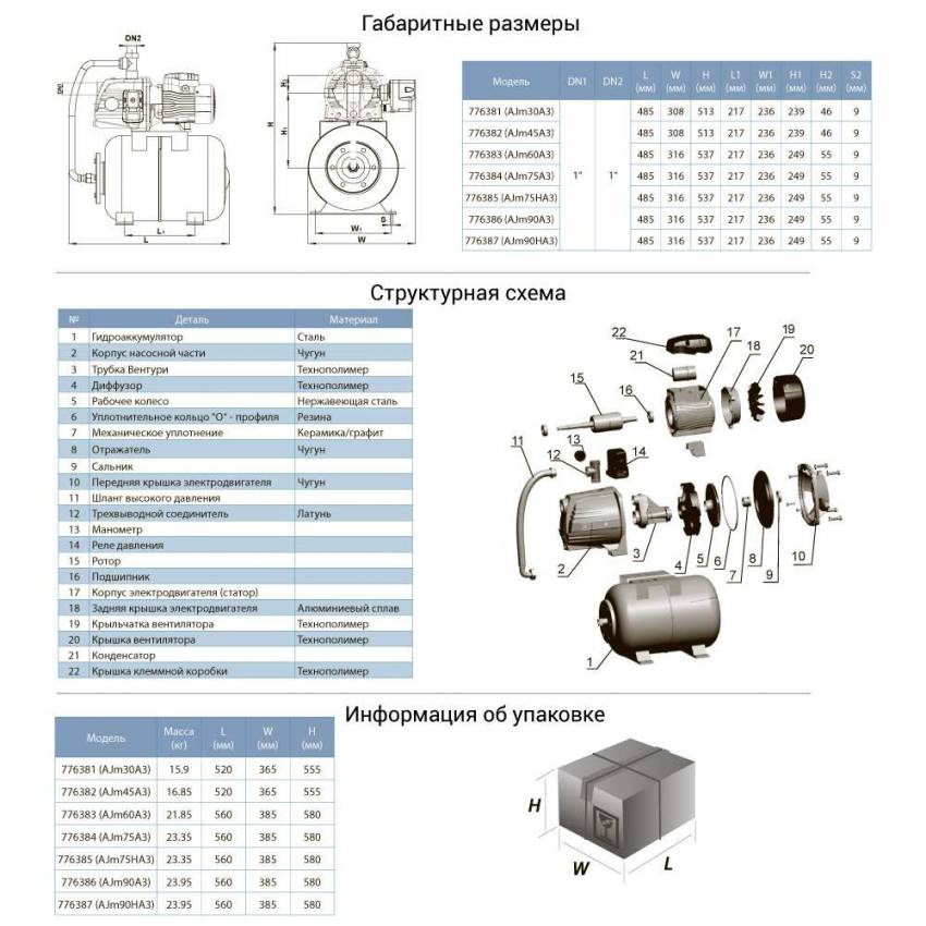 Станція водопостачання 0.45кВт Hmax 41м Qmax 45л/хв (самовсас. насос) 24л LEO 3.0 (776382) Станції водопостачання обладнані гідроакумулятором 24 літри та керуючою автоматикою. Станції призначені для перекачування чистої води та можуть застосовуватися: для побутового водопостачання, допоміжного обладнання, підйому води в трубопроводах високого та низького тиску, для зрошувальних систем садів та городів, теплиць та парників. Реле тиску керує роботою електронасоса - налаштування реле тиску Р(вкл) 1.4 бар/Р(викл) 2.8 бар. Установка обладнання повинна проводитись у місцях, захищених від атмосферного впливу та вологи. Насосна частина: Корпус: чавун з антикорозійною обробкою; Робоче колесо: нержавіюча сталь AISI 304; Вал двигуна: нержавіюча сталь AISI 304; Гідроакумулятор: фарбована сталь; Автоматика: реле тиску; Манометр входить до комплектації. Електродвигун: Тип двигуна: асинхронний, закритого типу, повітряного охолодження, з вбудованим в обмотку термозахистом; Підшипник: кочення (C