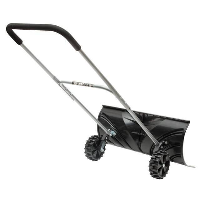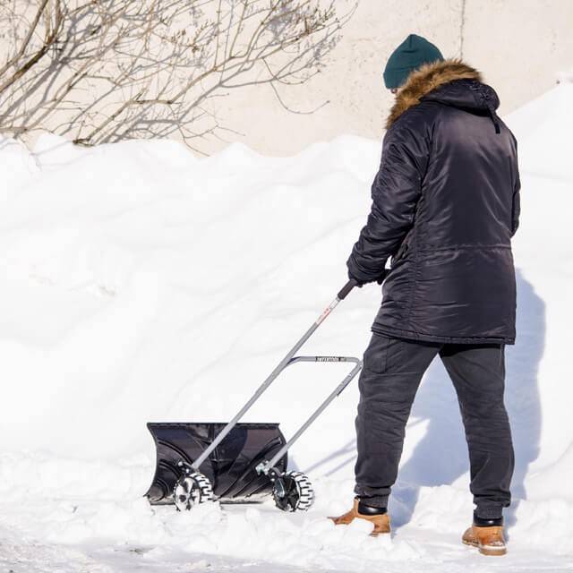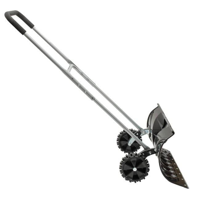 Руків’я регулюється по висоті для комфортної роботи людей різного зросту. Має повне покриття робочої поверхні м'яким пластиком для зручної роботи на морозі, захищає руки від примерзання. Широкі колеса з протектором дозволяють легко маневрувати ковшем і швидко переміщатися майданчиком, при цьому прибираючи сніг.