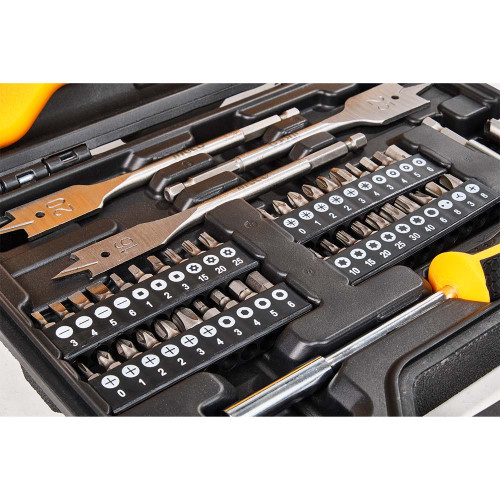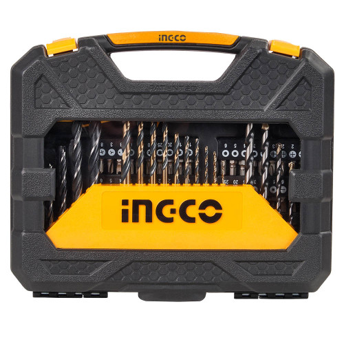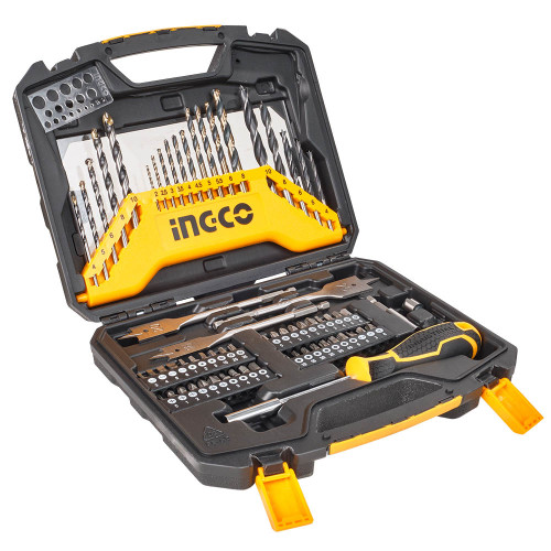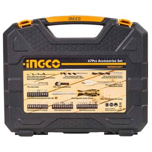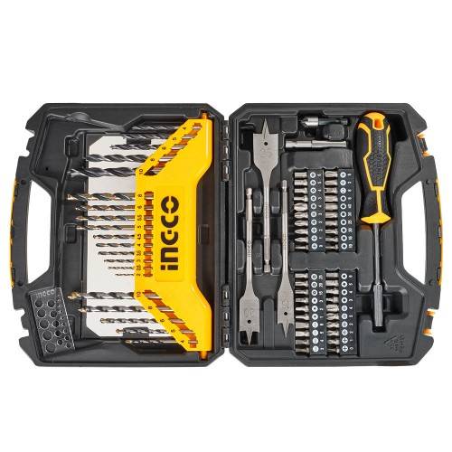 Набір свердлів і насадок-біт 67 шт INGCO призначений для монтажу/демонтажу різних кріпильних елементів і свердління отворів. дереву (5 шт), свердла по дереву перові (3 шт), тримач бітів (1 шт), насадки-біти для викрутки довжиною 25 мм (40 шт), зенковка 12 мм (1 шт), магнітний хвостовик (1 шт) , Вимірювач діаметра свердла (1 шт). Запакований у зручний та надійний пластиковий кейс.