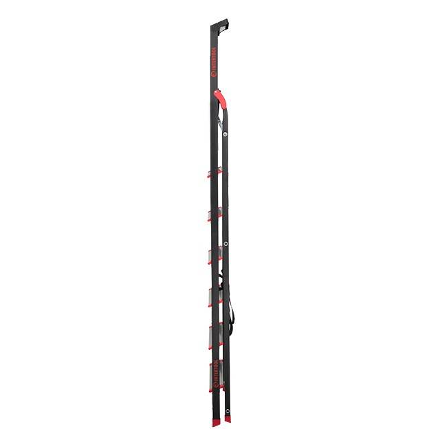 Міцно зчіплюються з будь-якими поверхнями підлоги і не пошкоджують покриття. Стрем'янка стоїть стійко і ви можете не боятися впасти. Надійні захищені з'єднання сходинок і профілю, поручні, стяжні профілі та ремені роблять конструкцію драбини стійкою і безпечною.