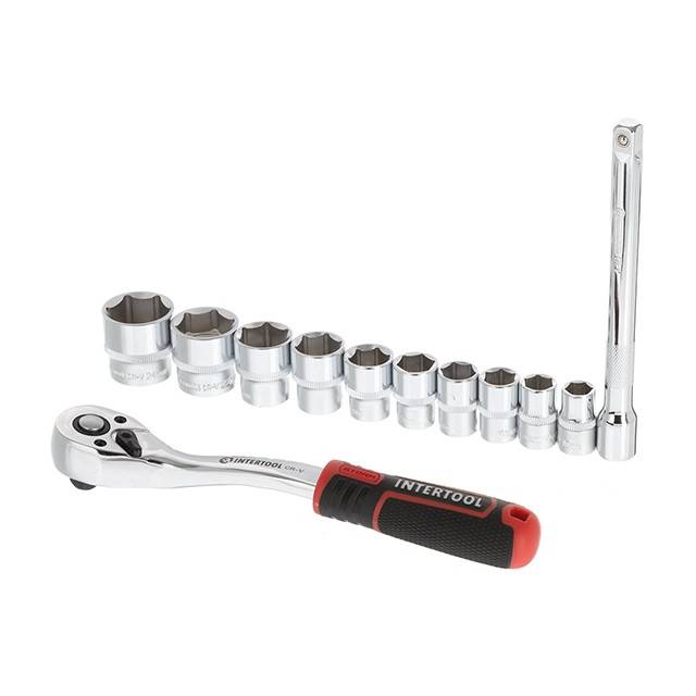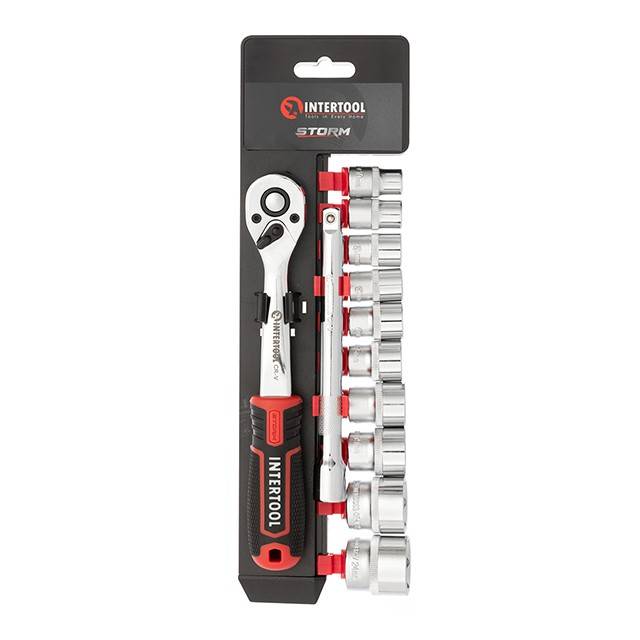 До набору увійшли найпопулярніші розміри торцевих головок, тріскачка та подовжувач для роботи у важкодоступних місцях.