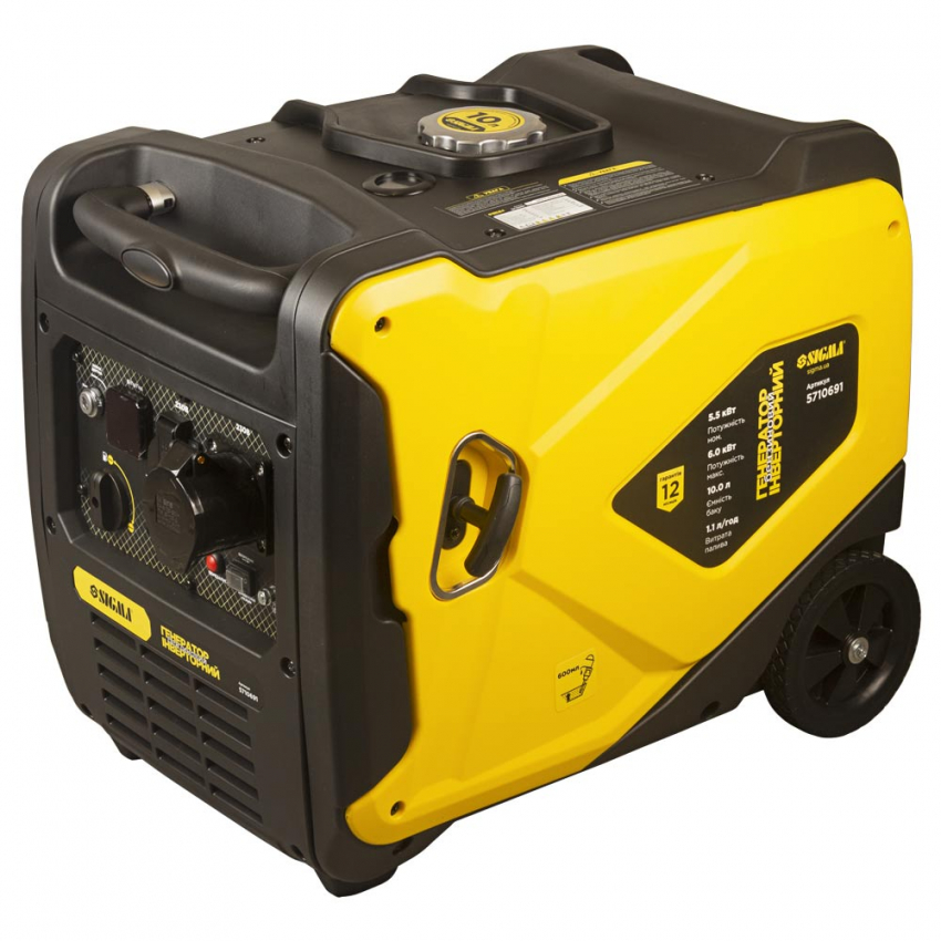 <b>Генератор інверторний бензиновий 5.5/6.0кВт 50дБ 4-х тактний з виведенням під АВР SIGMA (5710691)</b>