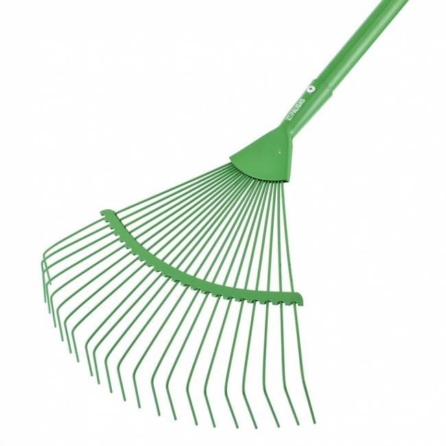 _x000D__x000D_Грабли веерные окрашены, 22 плоских зуба, охват рабочей части 415 мм._x000D__x000D_Тулейка внутренним диаметром 25 мм._x000D__x000D_Секторная пластина дополнительно укрепляет конструкцию._x000D__x000D_Призначени для сбора опавших листьев, срезанных веток, сорняков, садового смиття._x000D__x000D_Зубы выполнены из пружинной стали 65Г, окрашенные и