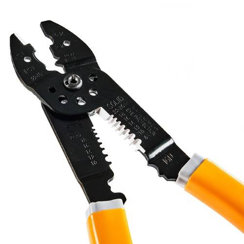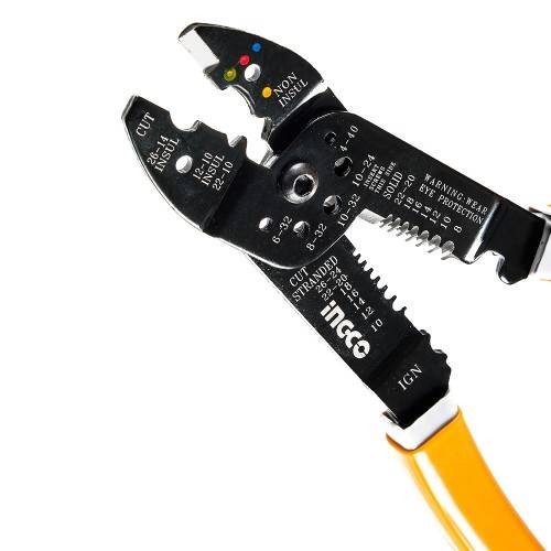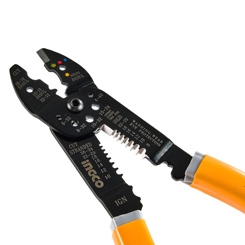 Багатофункціональний стрипер 215 мм INGCO застосовується для зачищення та різання різних видів кабелю, а також для відрізки латунних болтів, обтиску ізольованих та автомобільних клем. Він допоможе швидко та акуратно обробити дроти перед їх з'єднанням без пошкодження. Леза моделі виготовлені із інструментальної сталі 65Mn.