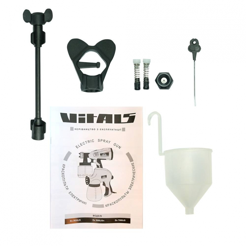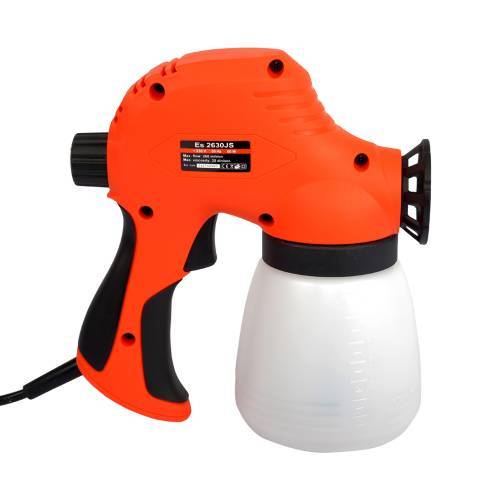 Опис Електричний фарбокопульт Vitals Es 2630JS спроектований з дотриманням усіх вимог безпеки та надійний в експлуатації. Розпилювач призначений для нанесення фарби, лаку та інших розчинних матеріалів у відповідній в'язкості на різних поверхнях. У фарбопульті Vitals Es 2630JS використовується сучасна, економічна та екологічна система нанесення ЛКМ методом розпилення. На відміну від систем розпилення з високим тиском, вона забезпечує розпилення матеріалу великим об'ємом, а не тиском повітря (при низькому тиску). Це впливає: збільшення продуктивності; нанесення захисних покриттів на різні поверхні; економії матеріалу завдяки високому відсотку перенесення ЛКМ на зафарбовувану поверхню; низькі втрати в умовах туманоутворення та відштовхування фарби від поверхні; можливості фарбування будь-якої конфігурації з будь-яким матеріалом. Джерелом електропостачання фарбопульта служить однофазна мережа змінного струму напругою 230 і частотою 50 Гц. Для створення великого обсягу потоку повітря пристрій вбудований компресор. Повітря, яке виготовляється з ним, нагнітається в бачок, що згодом видавлює ЛКМ через сопло. Інструмент є побутовим, призначений для виконання невеликих обсягів робіт, надійний у роботі, простий в експлуатації та обслуговуванні.