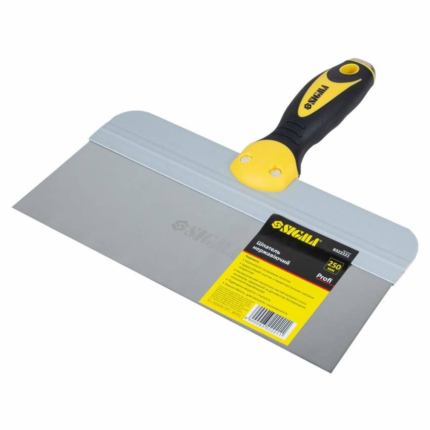 Шпатель нержавіючий Profi 250мм Sigma (8322221) застосовується для вирівнювання невеликих нерівностей при проведенні зовнішніх або внутрішніх оздоблювальних робіт. В основному застосовується для шпаклівки або штукатурки стін та стель.