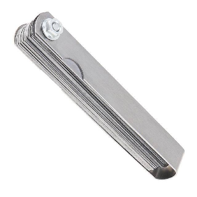 У моделі 32 леза в діапазоні розмірів від 0,04 до 0,88 мм, дозволяють точно вимірювати найвужчі отвори між деталями. Кожне лезо має маркування товщини для легкої ідентифікації.