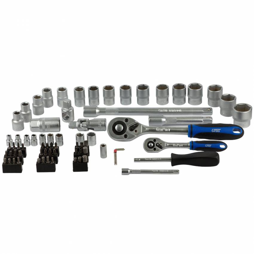 Наборы Start Grad - бюджетная линейка. Главная особенность наборов - выгодная цена. Этот инструмент подойдет для автолюбителей и домашних мастеров для нечастого использования и малых нагрузок. Пригодится при сборке или ремонте мебели, сантехники и других бытовых дел. Инструменты изготовлены из надежной инструментальной стали.