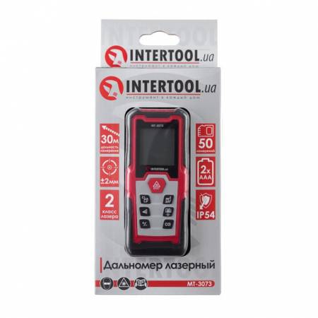 Переваги: Лазерний далекомір INTERTOOL MT-3075 має великий функціонал, який покриває всі запити майстра у вимірі та обчисленні відстаней. Завдяки наявності функції пам'яті далекомір «запам'ятовує» останні 50 значень, що дуже зручно. Клас захисту від вологи та пилу IP54 дозволяє працювати як у приміщенні, так і на відкритому повітрі.