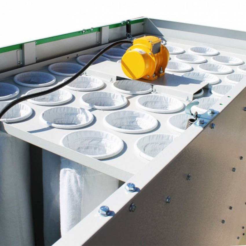 Вібраційний електродвигун дозволяє в автоматичному режимі максимально ефективно проводити очищення фільтрувальних рукавів, зберігаючи тим самим ефективність роботи установки і продовжуючи термін служби рукавів. Можливість регулювання інтервалу включення.