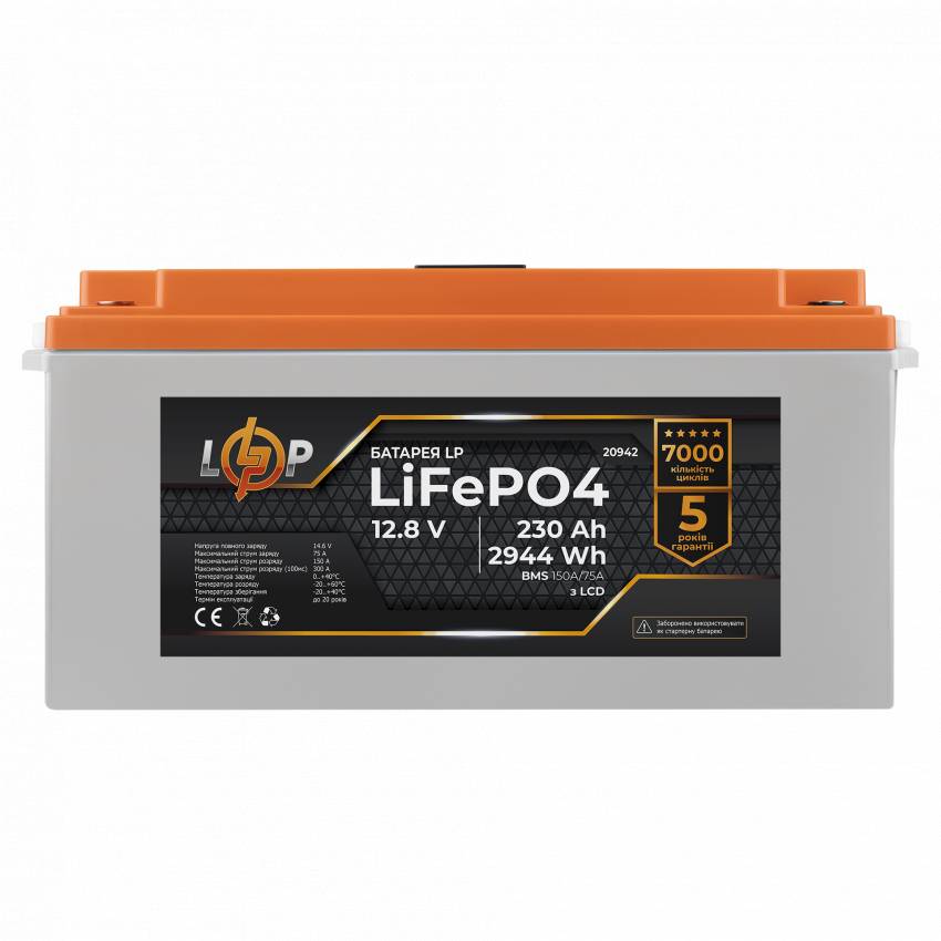 Акумулятор LP LiFePO4 LCD 12V (12,8V) - 230 Ah (2944Wh) (BMS 150A/75A) пластик