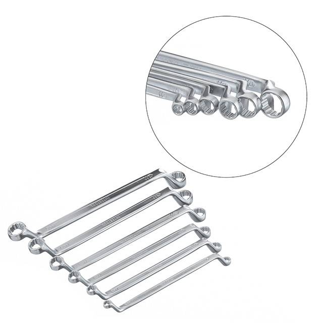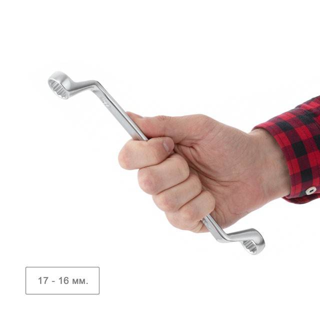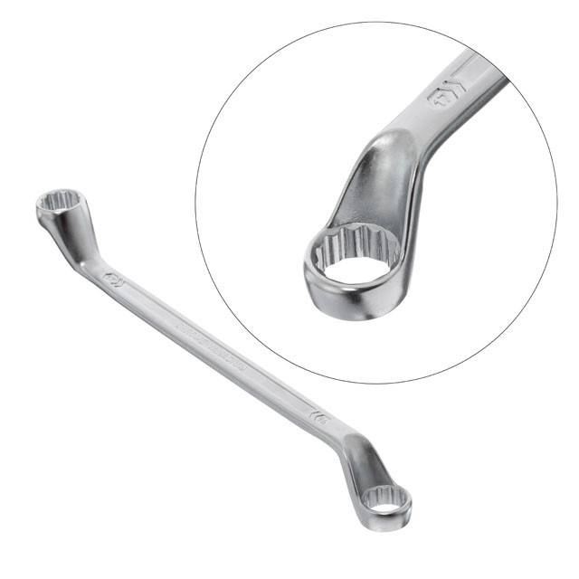 Накидний тип ключів з дванадцятьма гранями збільшує площу прилягання поверхонь та знижує ризик зриву граней гайок та болтів. Практична форма та вигин руків’я ключа забезпечують оптимальні умови для докладання зусилля, завдяки чому ви легко закрутите чи відкрутите кріпильний елемент.